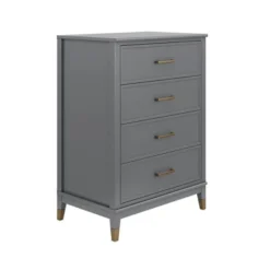 Styled in a mid-century favorite profile, this three-drawer chest is a fashionable new take on a favorite look. Made from wood with a walnut stain finish, it features a slow curved accent front with a set of four legs and beveled like edge accent. It’s a smart vintage-inspired look for bedrooms and living rooms. Highlight your space with this 3 Drawer Chest with Contrasting Drawer Panels Walnut from the Signature Collection by StyleCraft Home Collection. This chest of drawers has 3 drawers that fully extend with black metal ball bearing drawer glides to aid in utilizing the full space. The contrasting drawer panels are two-toned and the design functions as the drawer pull. The taper legs allow this chest to stand off of the floor which is optimal for cleaning those hard to reach areas. This will pair well with mid-century modern styling and is sure to be a conversation piece. Due to lighting and monitor differences, actual colors and finishes may vary slightly from what appears online.