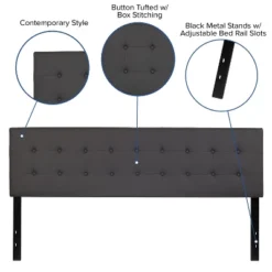 Flash Furniture Bristol Metal Tufted Upholstered Queen Size Headboard In Dark Gray Fabric