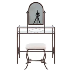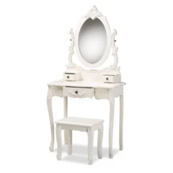 Contemporary Wood Console Table Dressing Table Desk With Mirror And Stool Set – Olivia & May